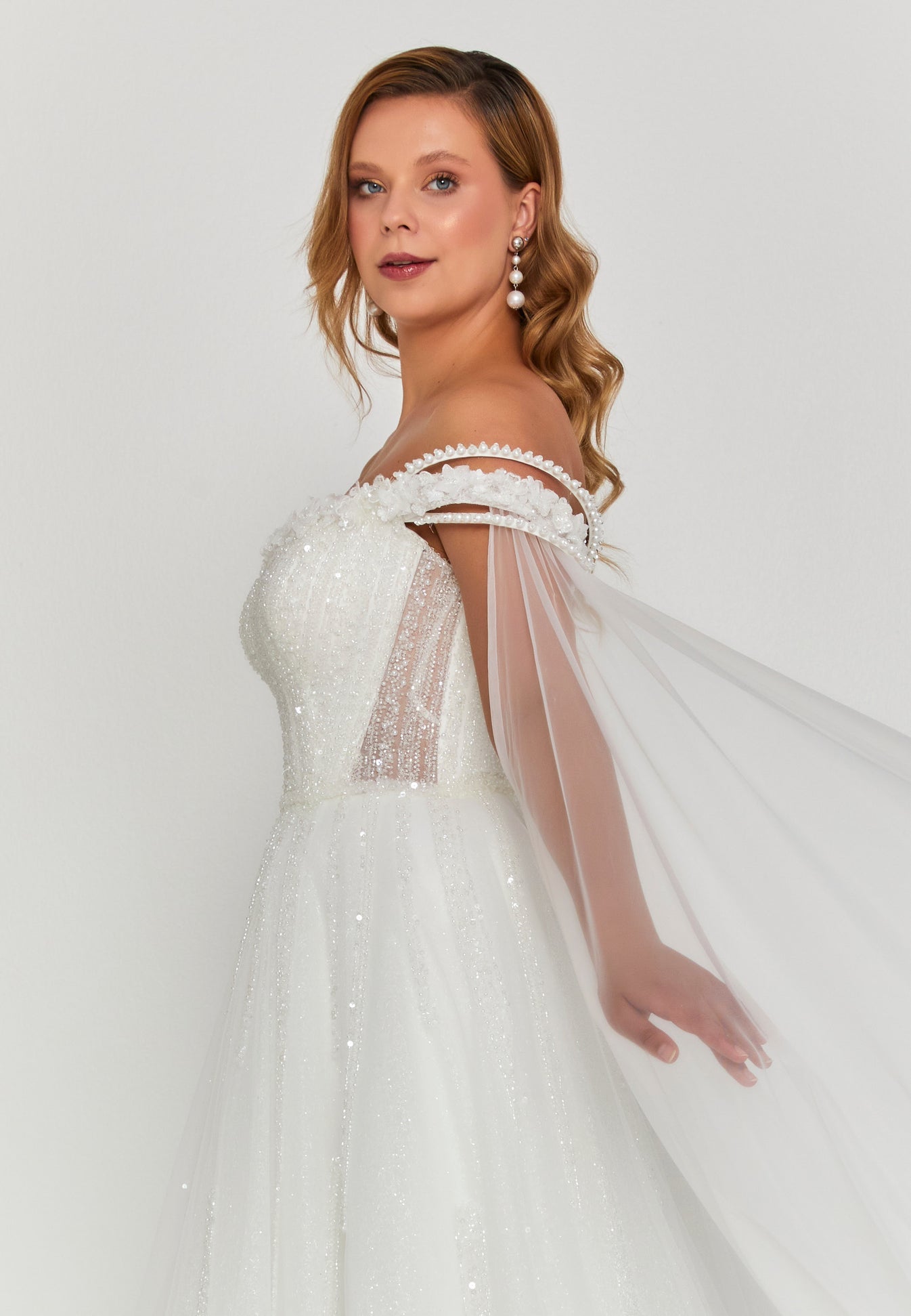 Whether you're walking down the aisle of a cathedral or exchanging vows under the open sky, this gown brings presence without overpowering you. It's dreamy, it's elegant, and it's designed to make you feel like yourself, only more luminous.