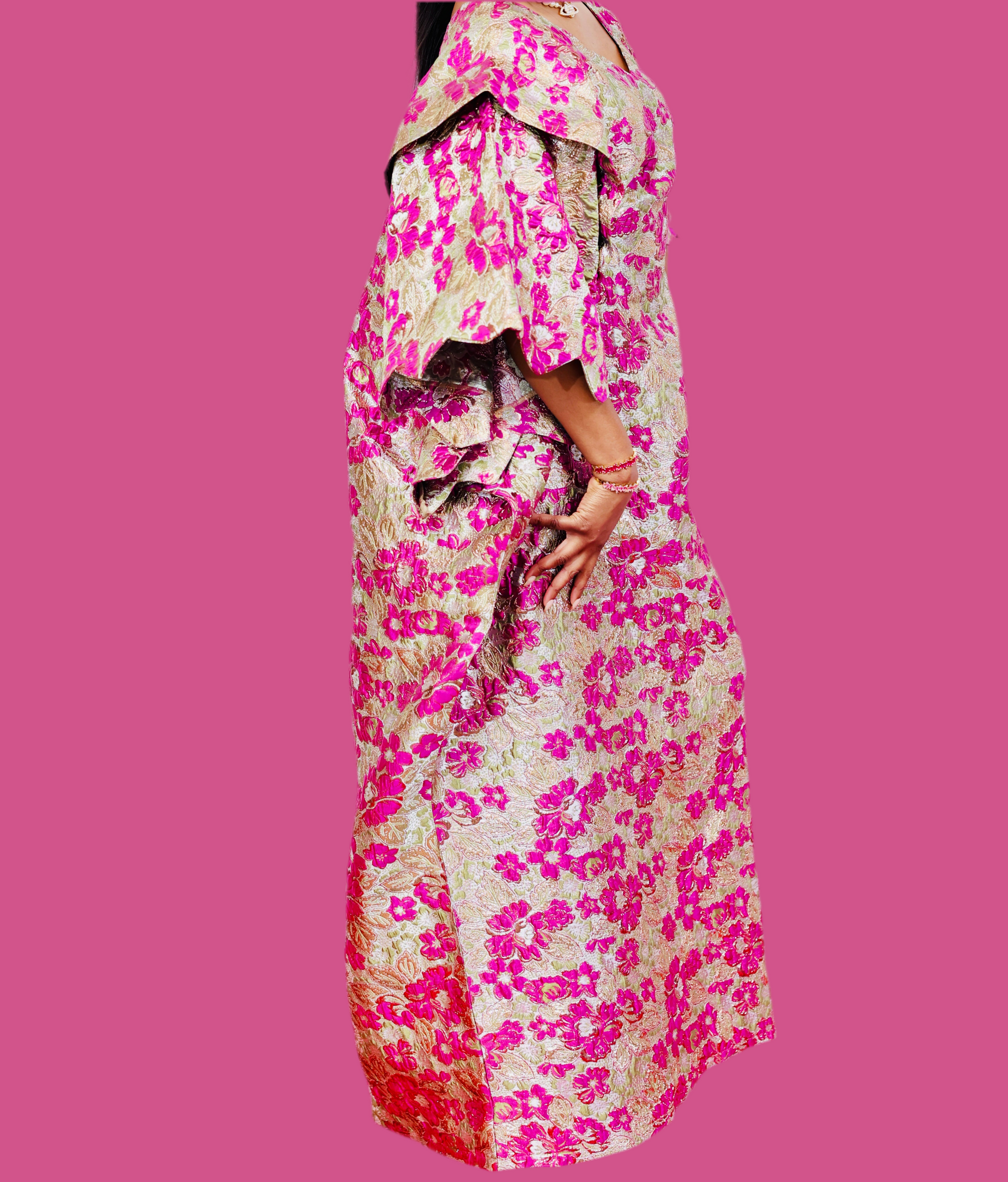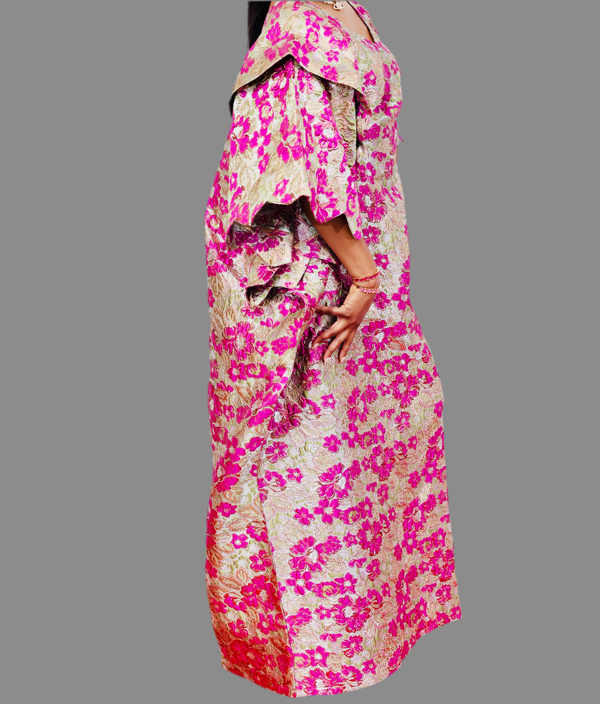 The boubou dress exudes stunning sophistication and allure, crafted from luxurious Damask. Owning this piece is like a dream come true, ideal for any gathering or event. For an added touch of elegance, pair it with the include scarf to complete your look.