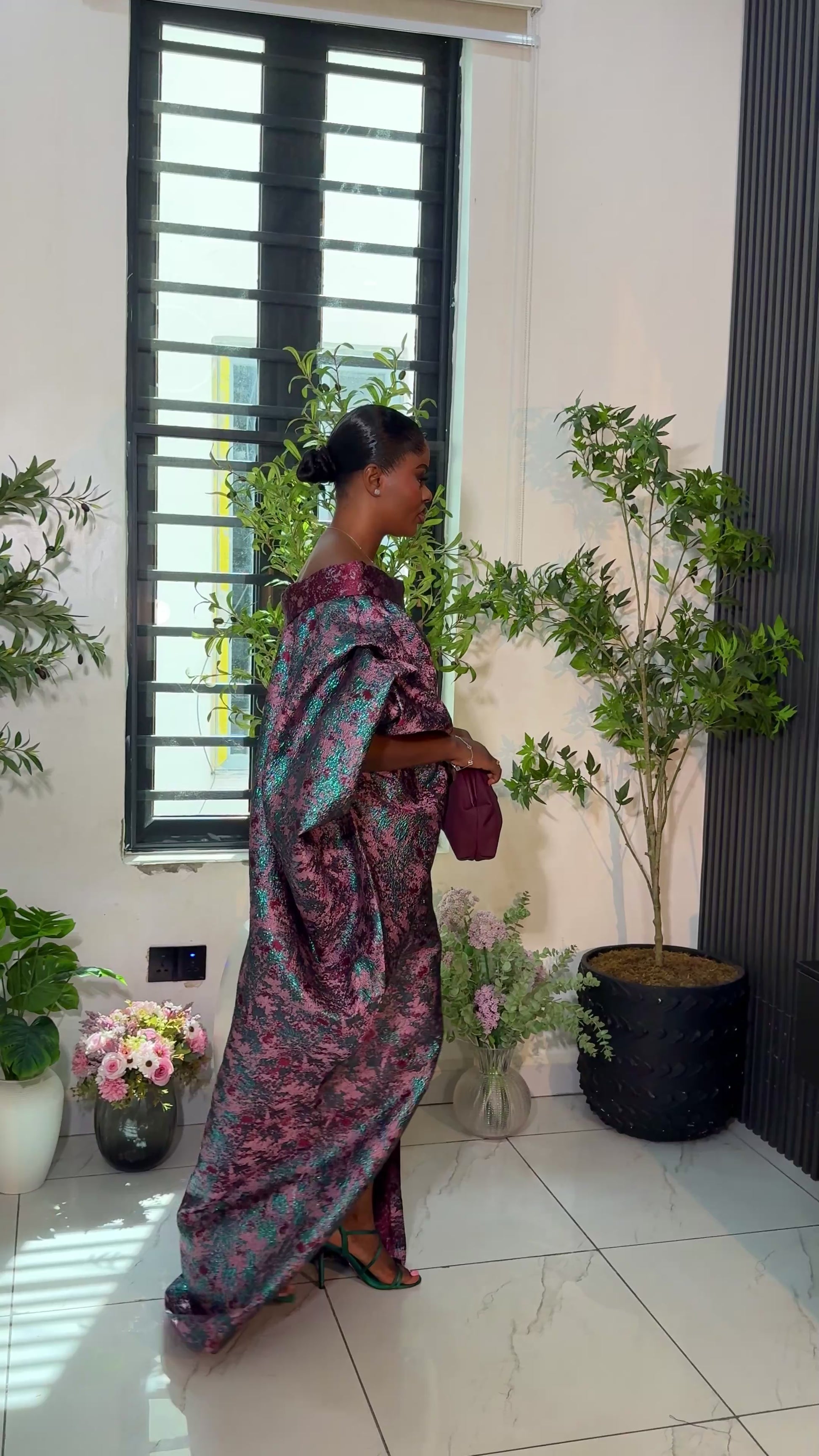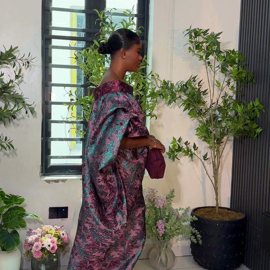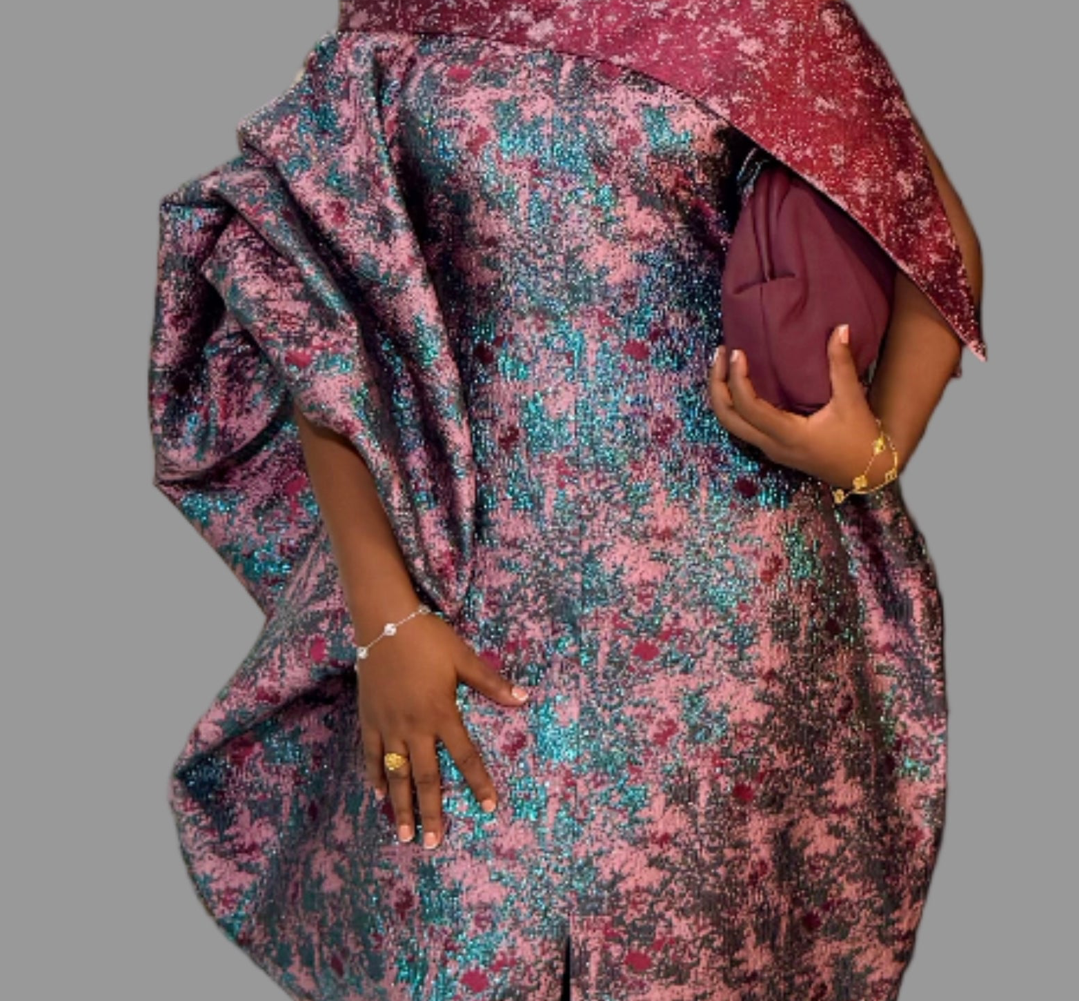 Turn heads in this luxury brocade Boubou — designed to flatter with a hidden waist-cinching belt for the perfect silhouette. It features a matching scarf to complete your look. Class, comfort, and elegance in one timeless piece.