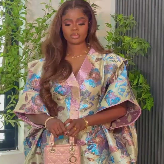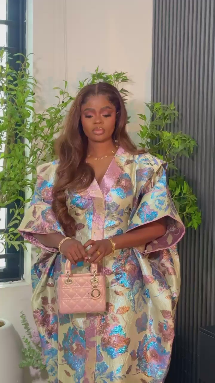 The boubou dress exudes stunning sophistication and allure, crafted from luxurious Damask. Owning this piece is like a dream come true, ideal for any gathering or event. For an added touch of elegance, pair it with the include scarf to complete your look.