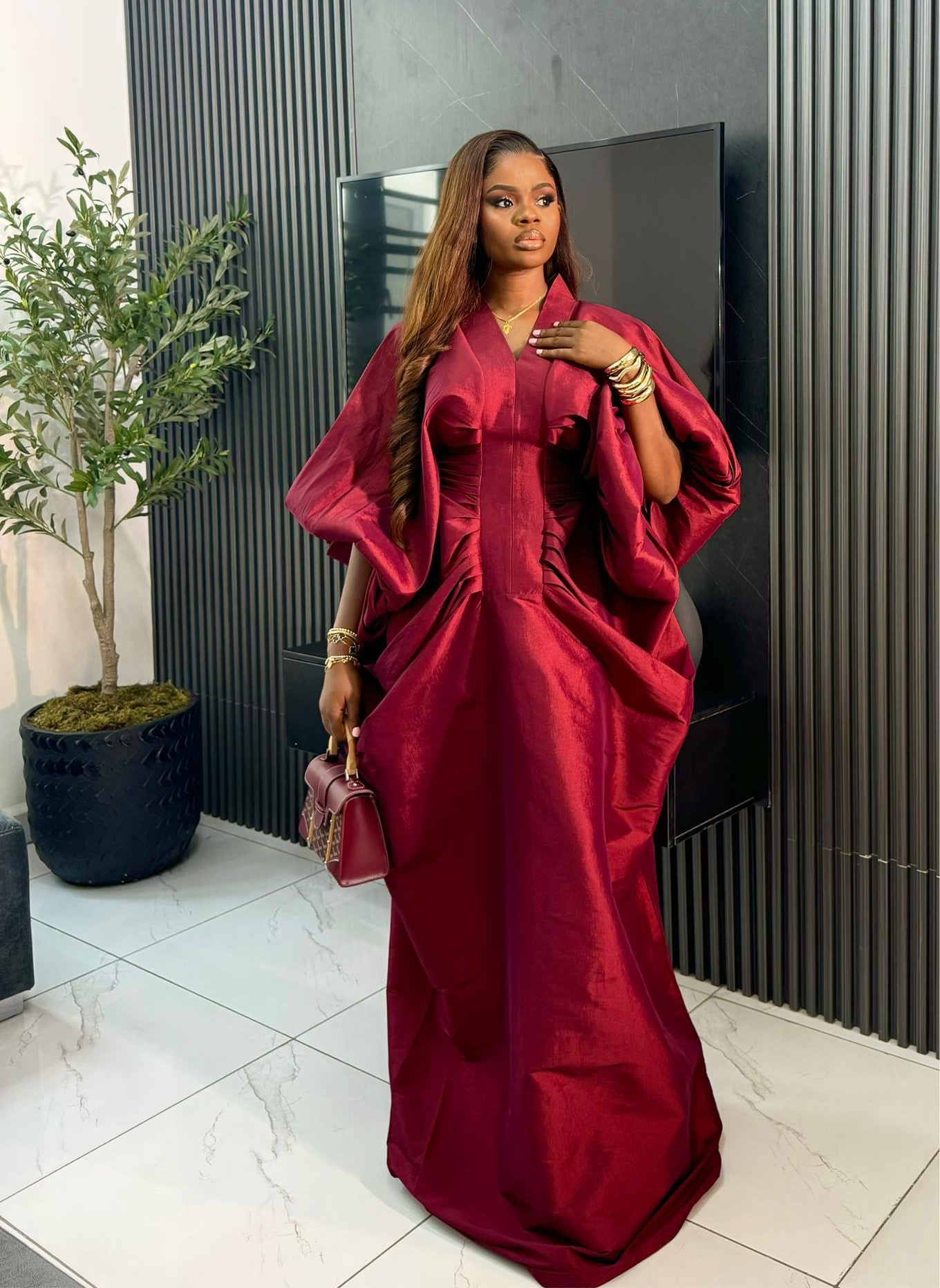 Luxury Boubou Dress. Burgundy