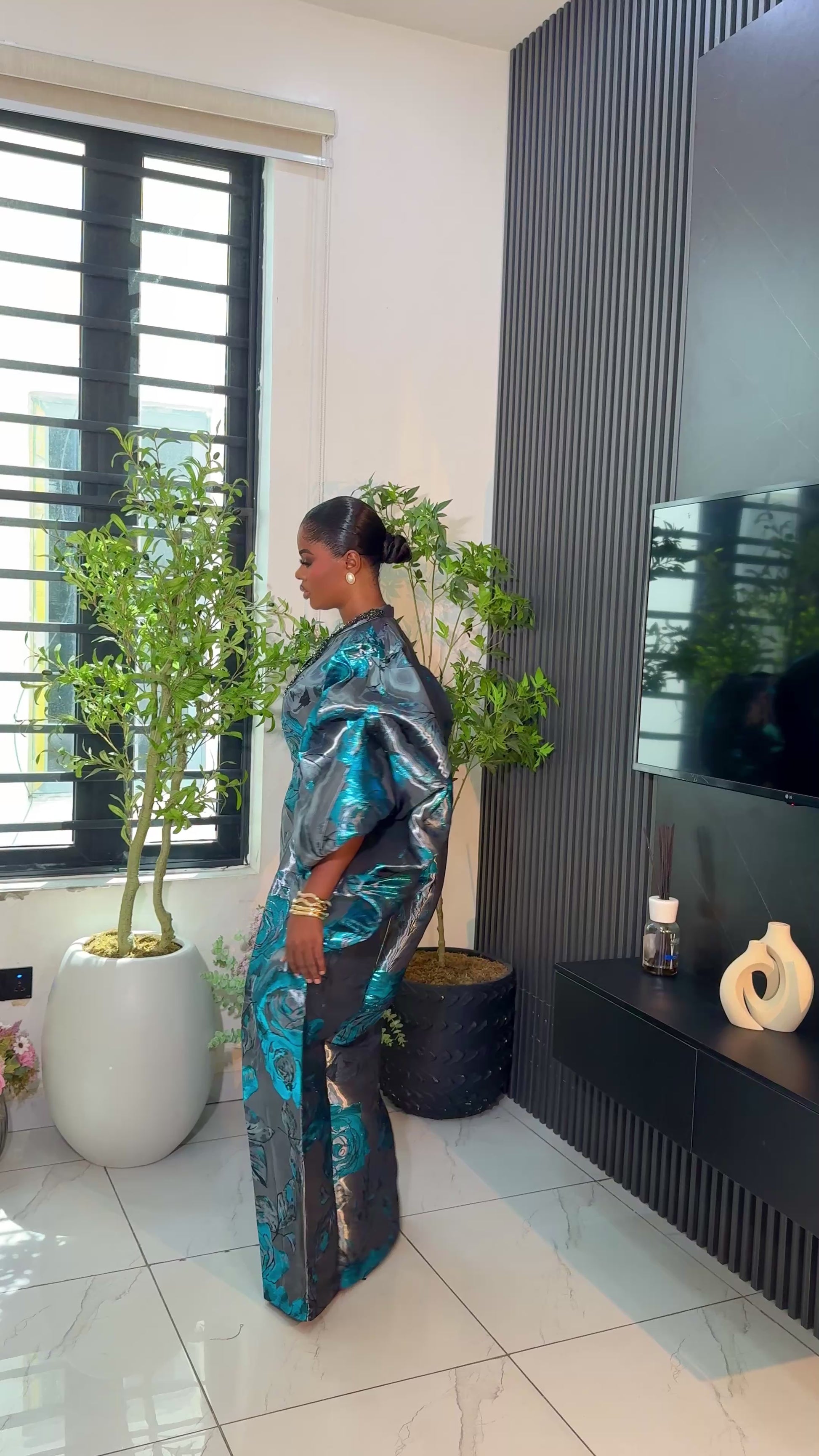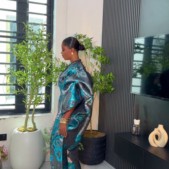 Turn heads in this luxury brocade Boubou — designed to flatter with a hidden waist-cinching belt for the perfect silhouette. Class, comfort, and elegance in one timeless piece.