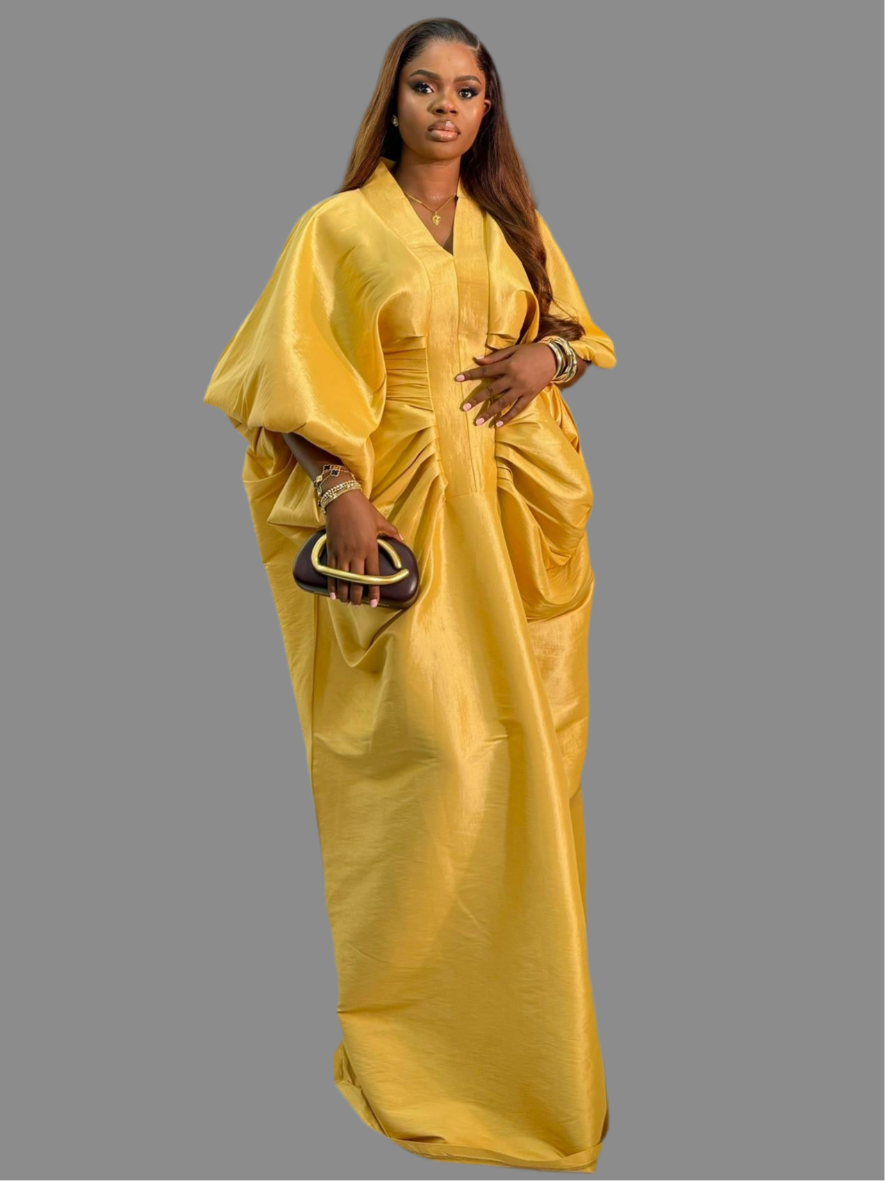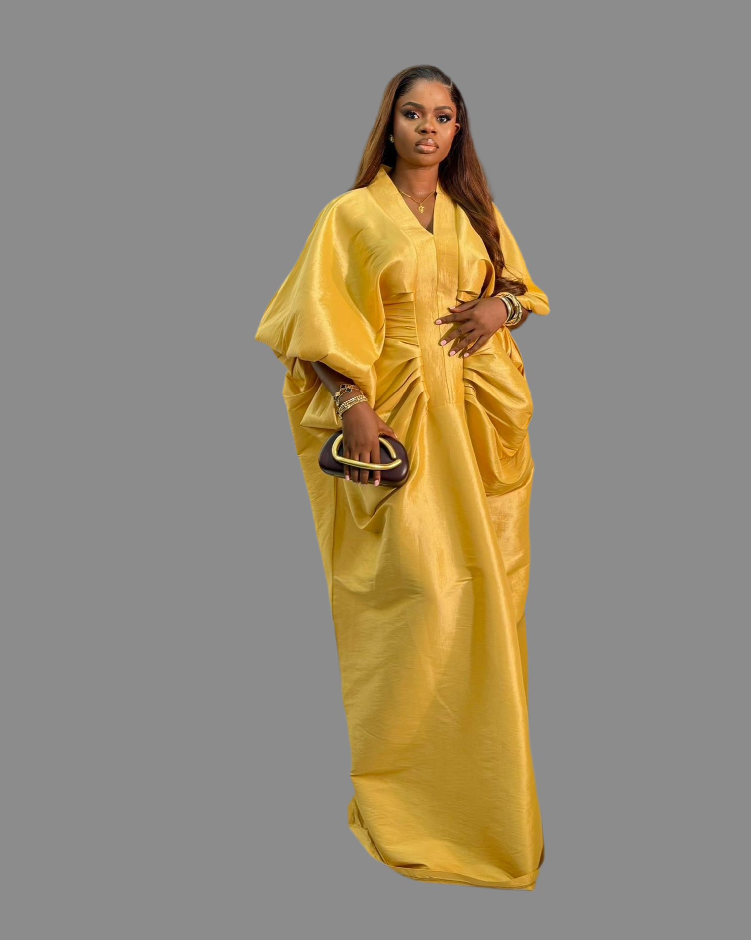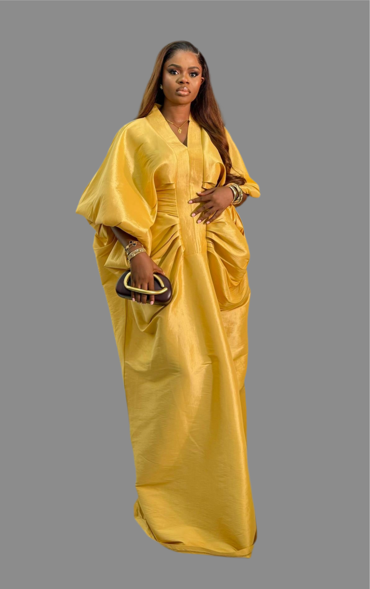 The boubou dress exudes stunning sophistication and allure, crafted from luxurious Damask. Owning this piece is like a dream come true, ideal for any gathering or event. For an added touch of elegance, pair it with the include scarf to complete your look.