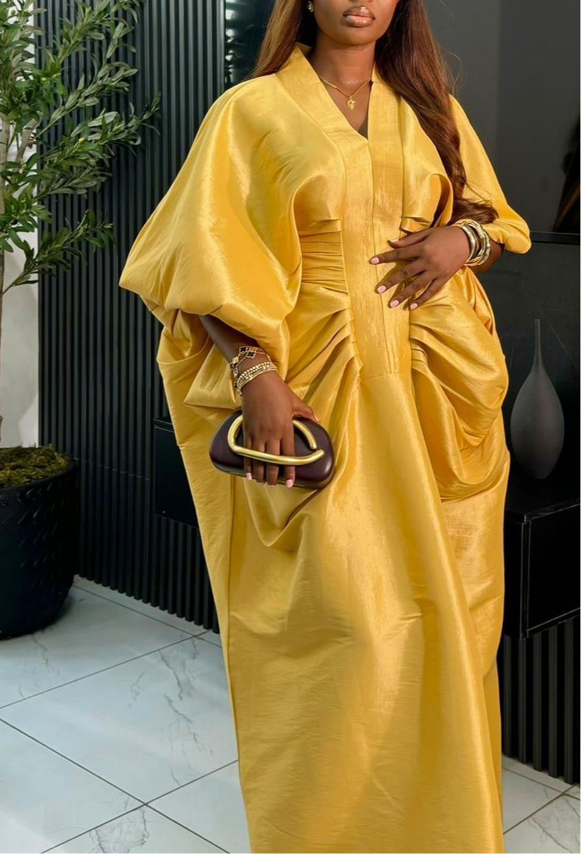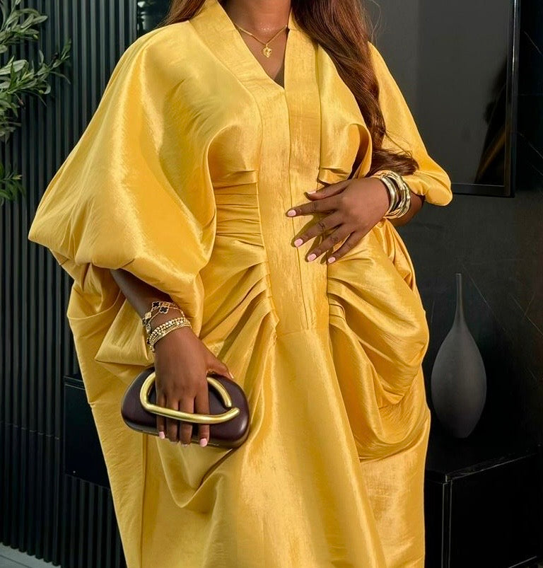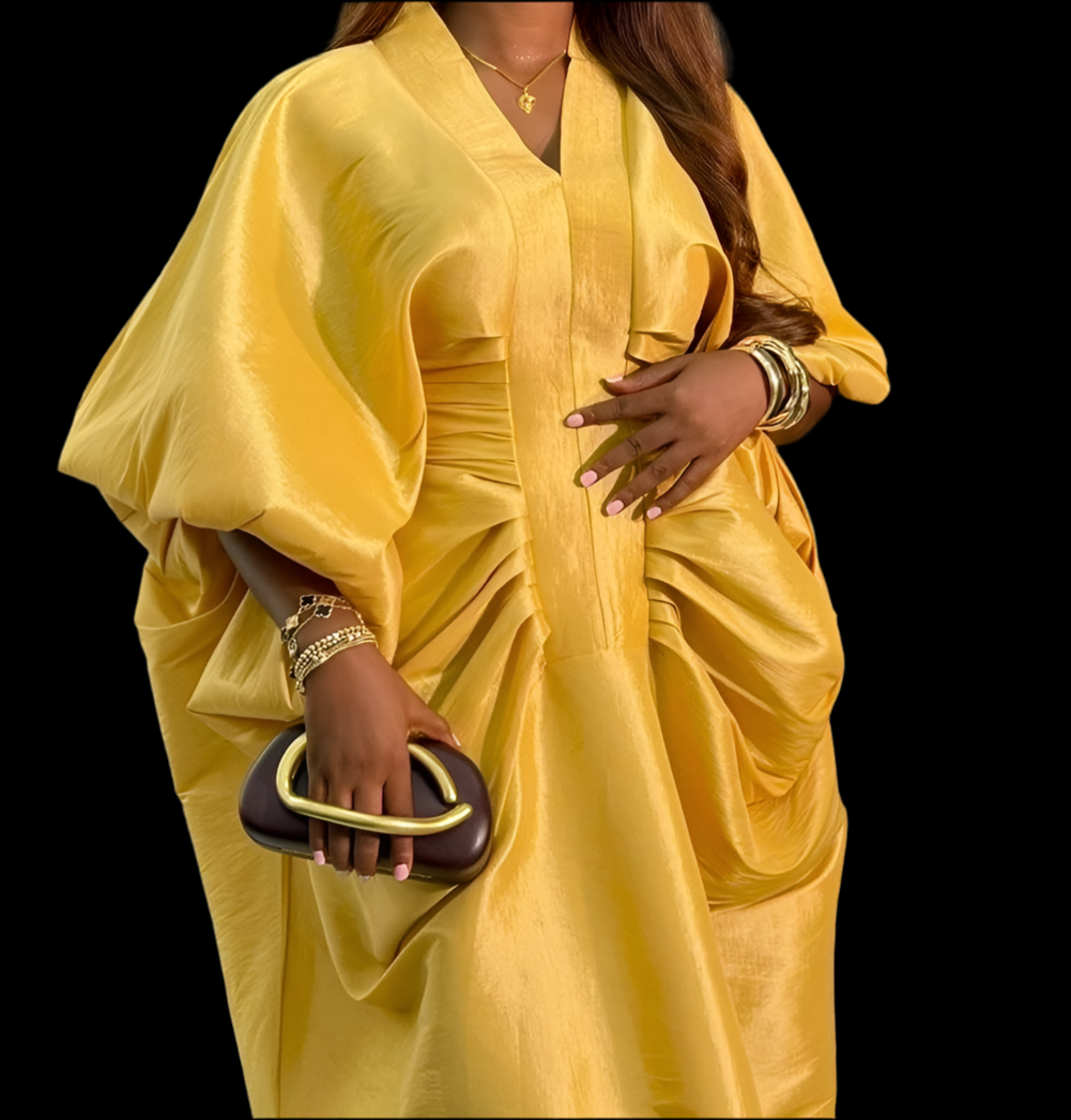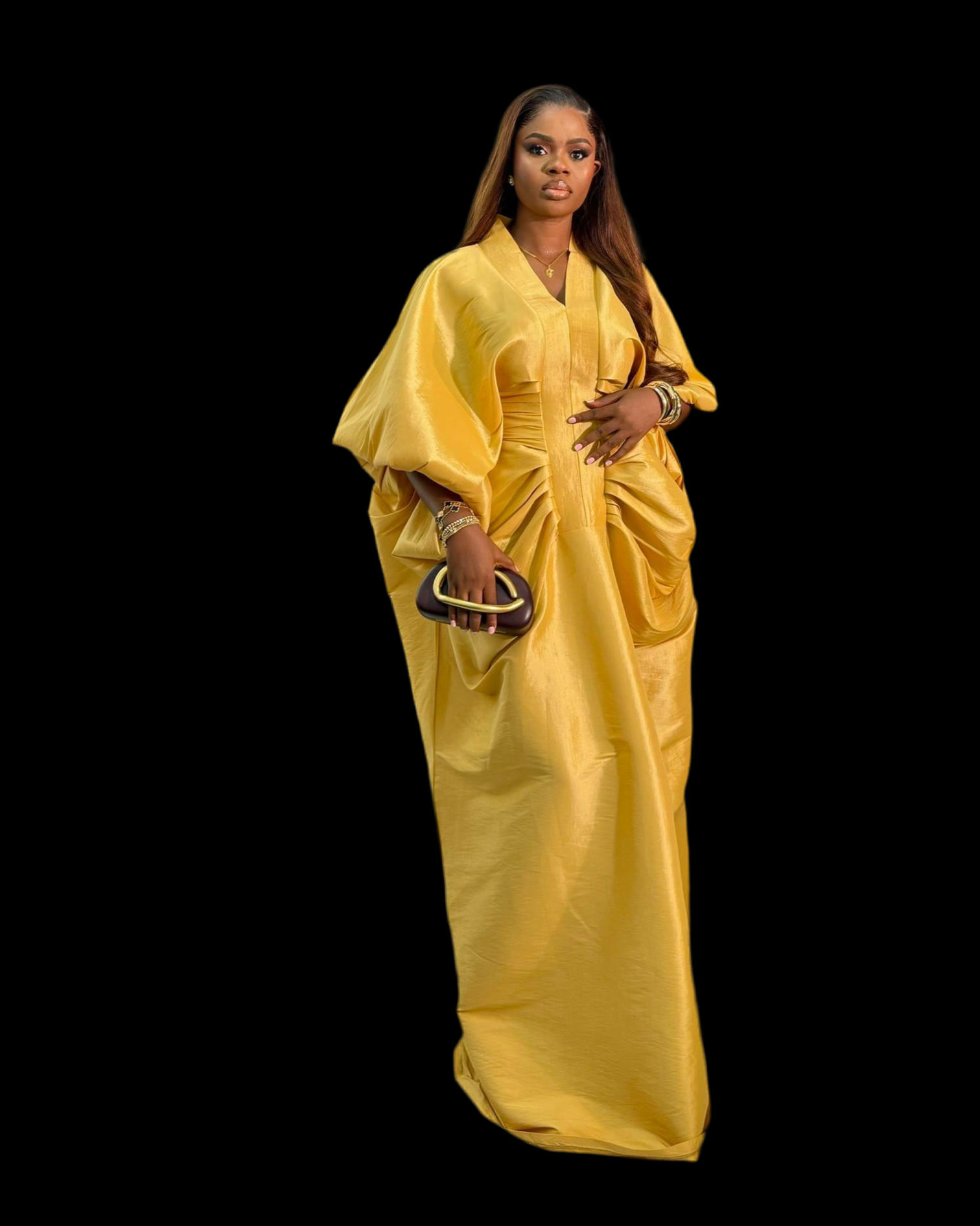The boubou dress exudes stunning sophistication and allure, crafted from luxurious Damask. Owning this piece is like a dream come true, ideal for any gathering or event. For an added touch of elegance, pair it with the include scarf to complete your look.
