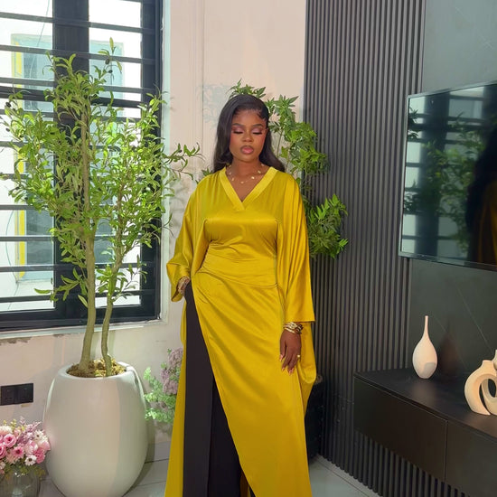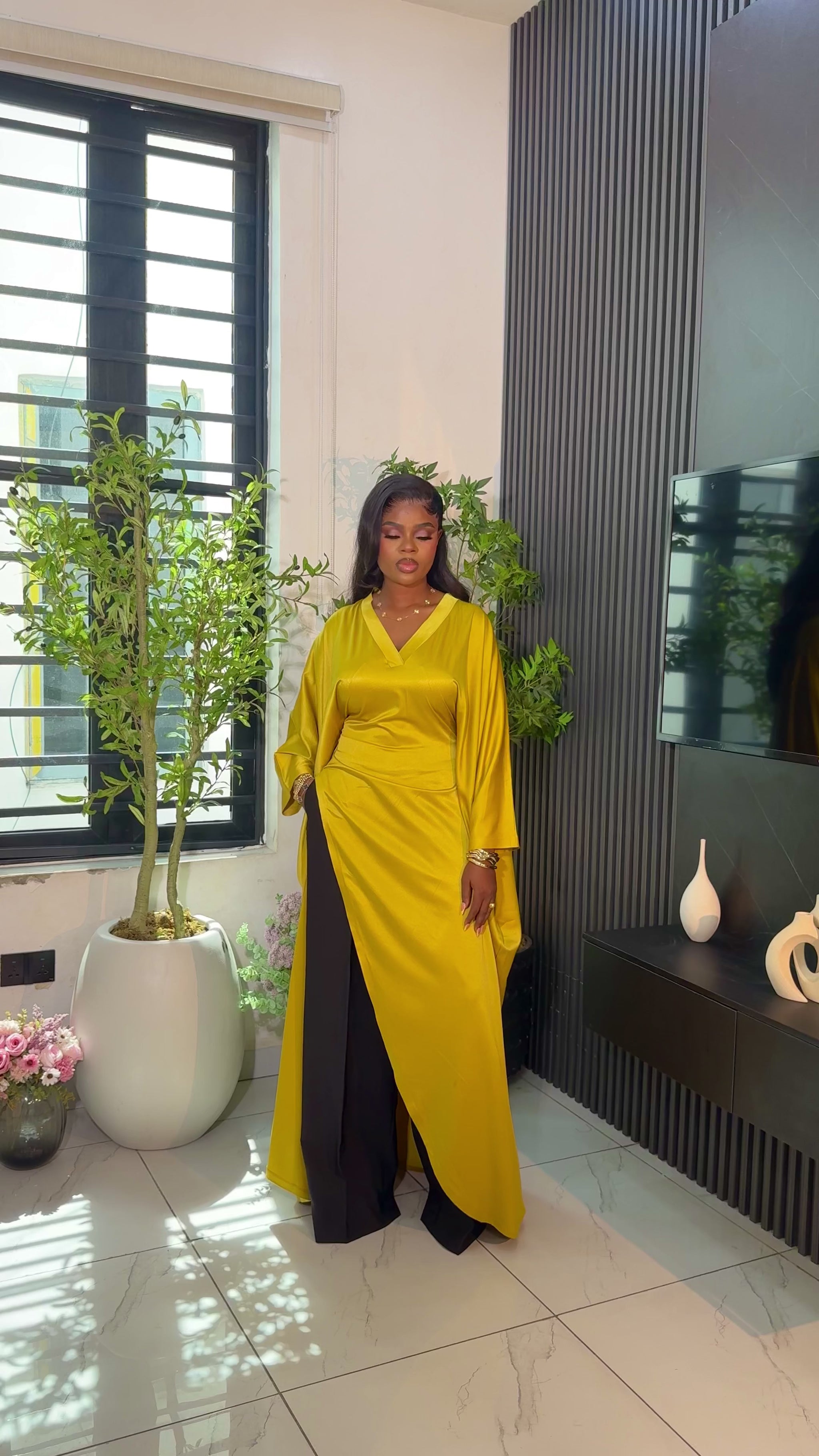 Luxury Pants Set . The Fashion Queen Collection. Yellow top and Black pants.