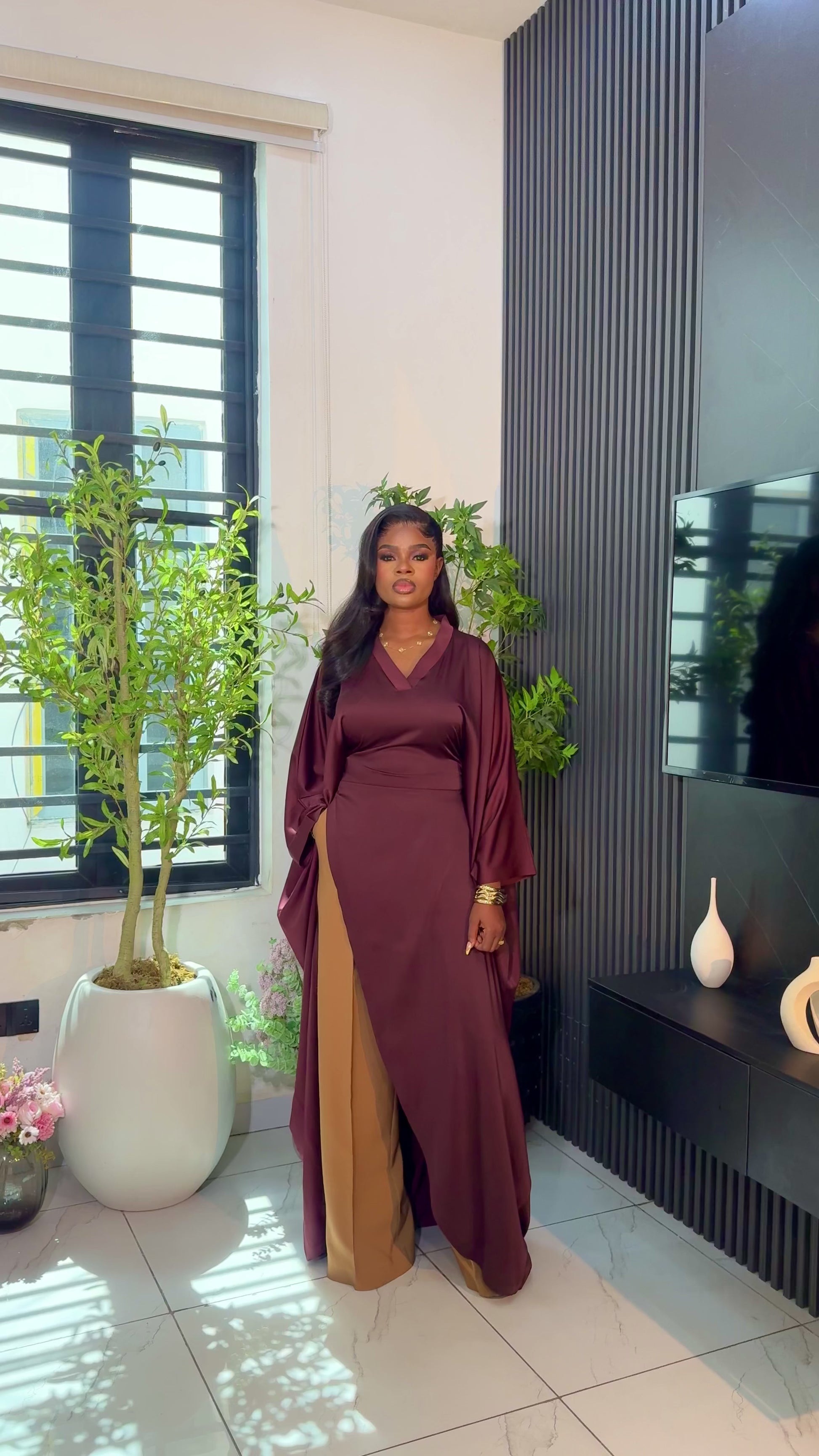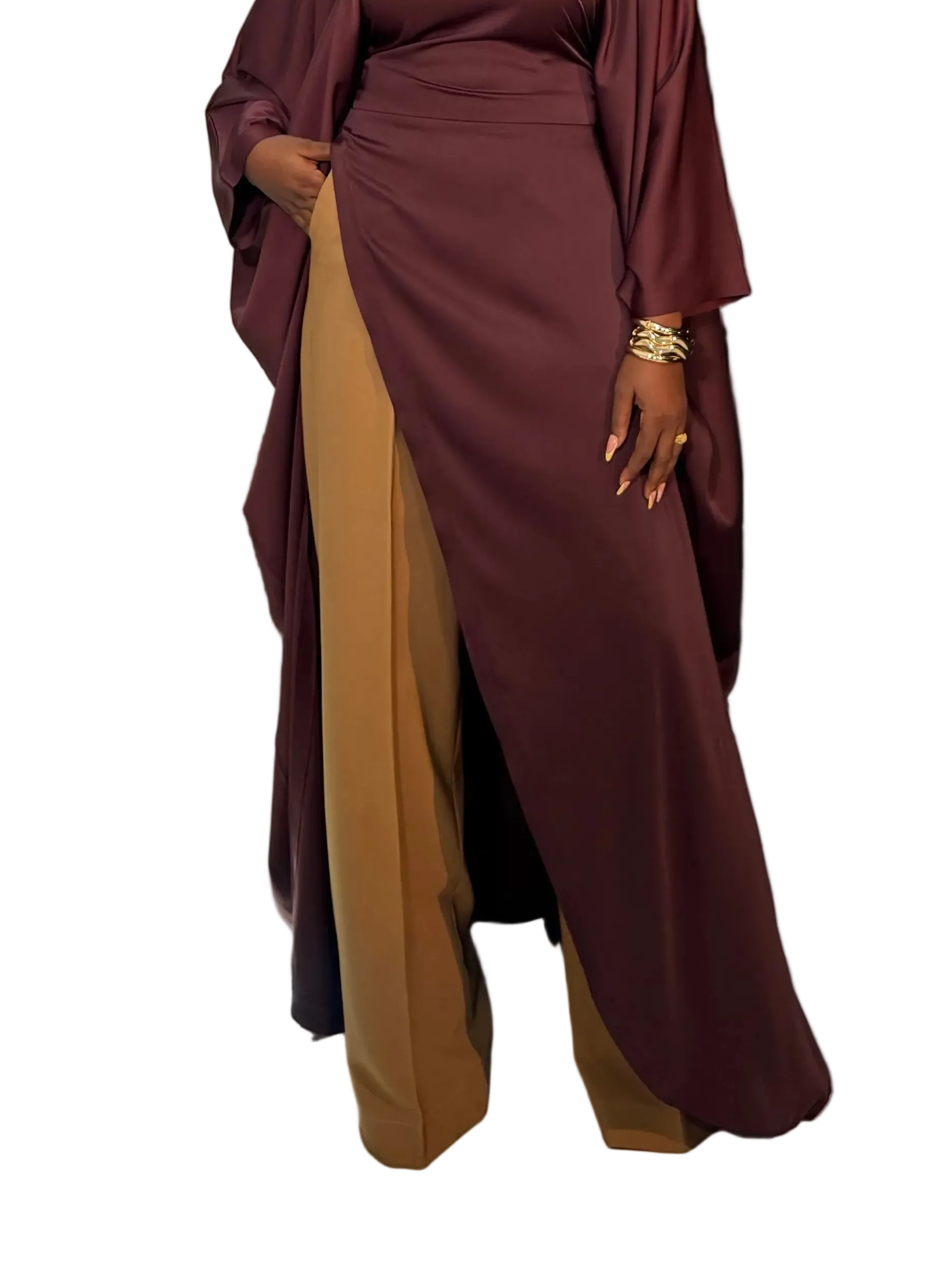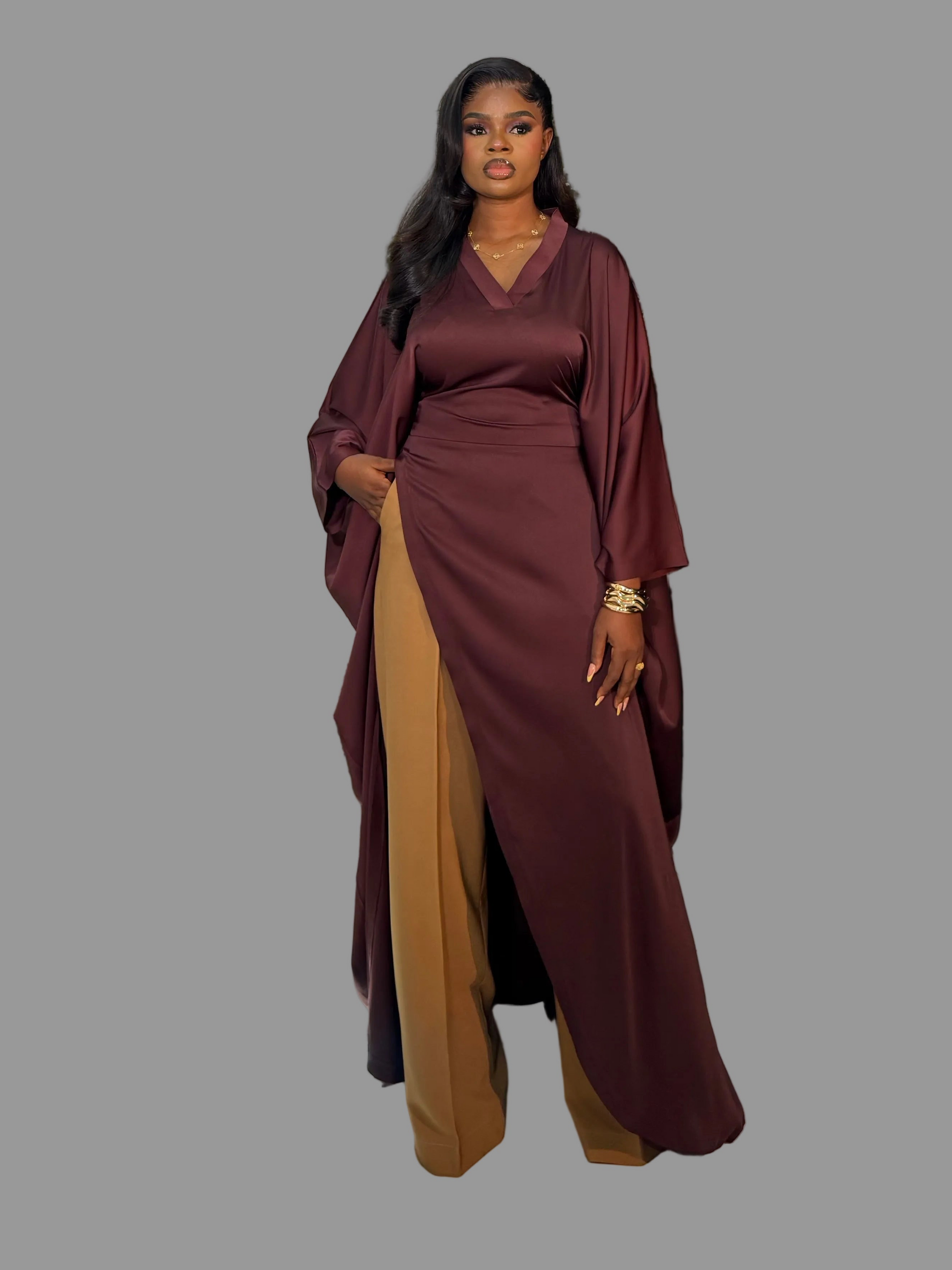 Luxury Pants Set . The Fashion Queen Collection. Brown top and Caramel pants.