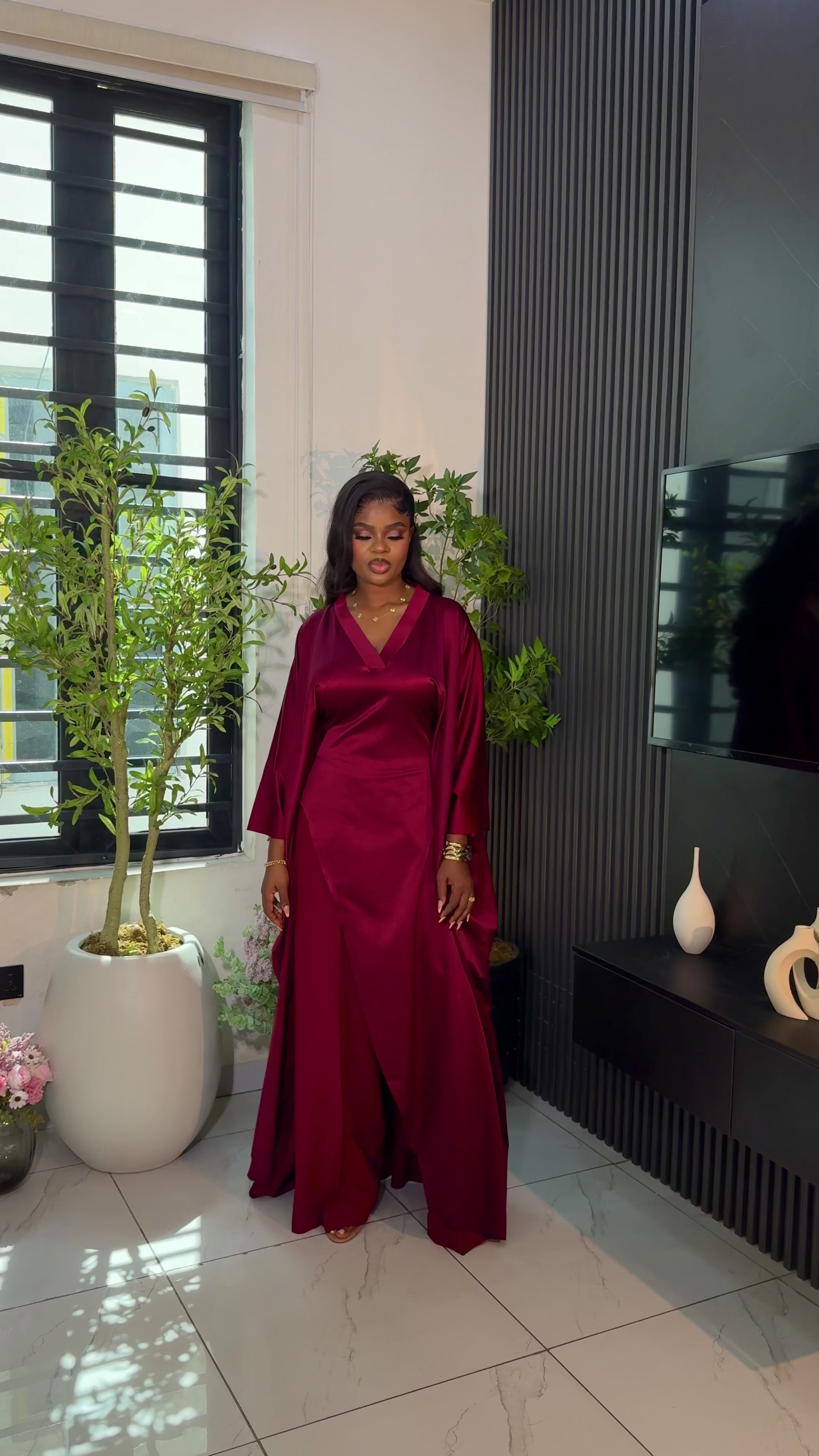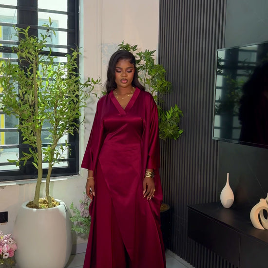Luxury Pants Set . The Fashion Queen Collection. Burgundy top and Burgundy pants.