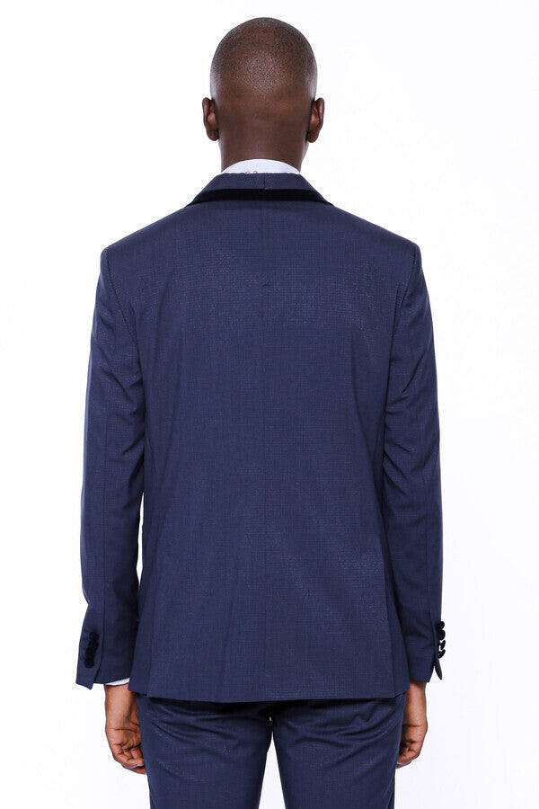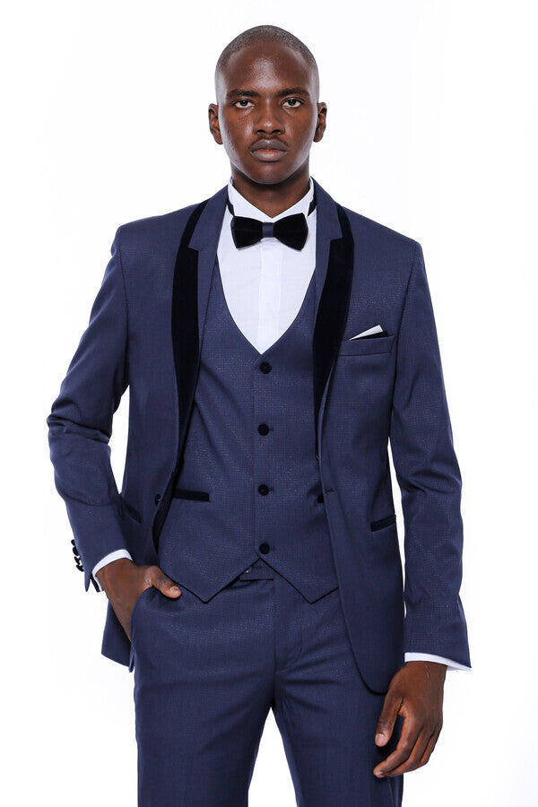 Navy Blue Slim Fit Tuxedo | Patterned Suit