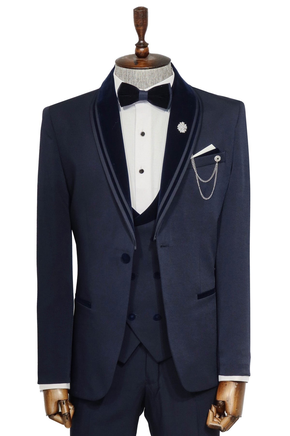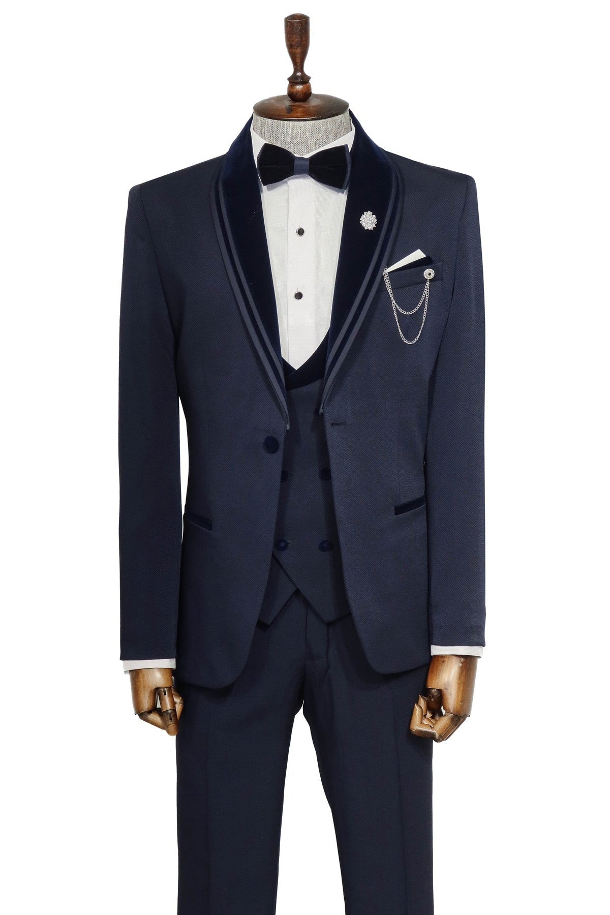 Navy Slim Fit 3-Piece Tuxedo | Patterned Fabric