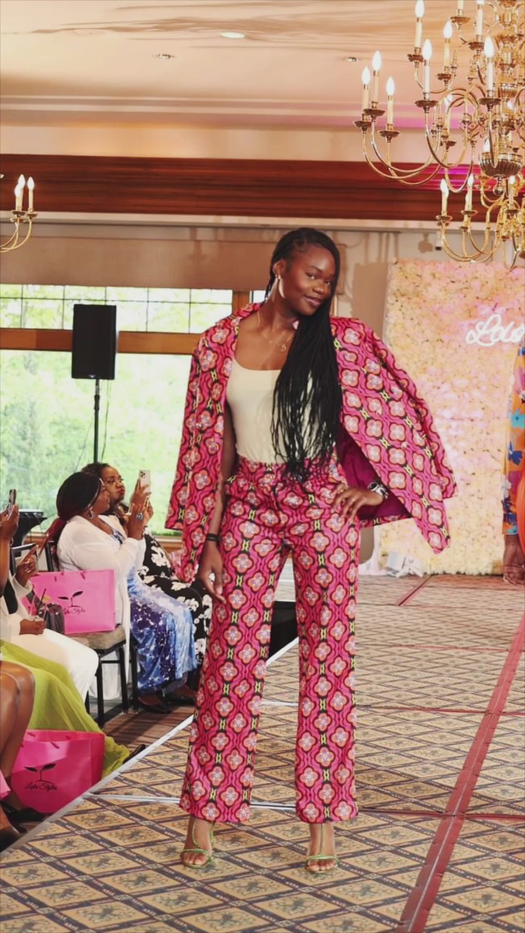 Stand out from the crowd and make a statement with this modern yet timeless patterned ensemble. Whether dressing for a professional event or a night out on the town, this set offers versatility and sophistication. Achieve effortless elegance without breaking the bank, as this set is offered at an unbeatable value . Also available in blue . US Size 6, 8, 10, 12.
