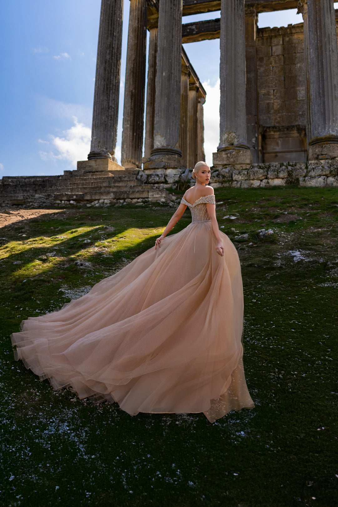 Evoking the spirit of a daring damsel, Queen Donna Liza exudes confidence and poise with every step. The dramatic silhouette and bold design elements make a bold statement, ensuring all eyes are on you as you grace the room with your presence. The sharp cutout through the front adds a touch of intrigue, revealing just enough skin to tantalize the senses and ignite curiosity.
