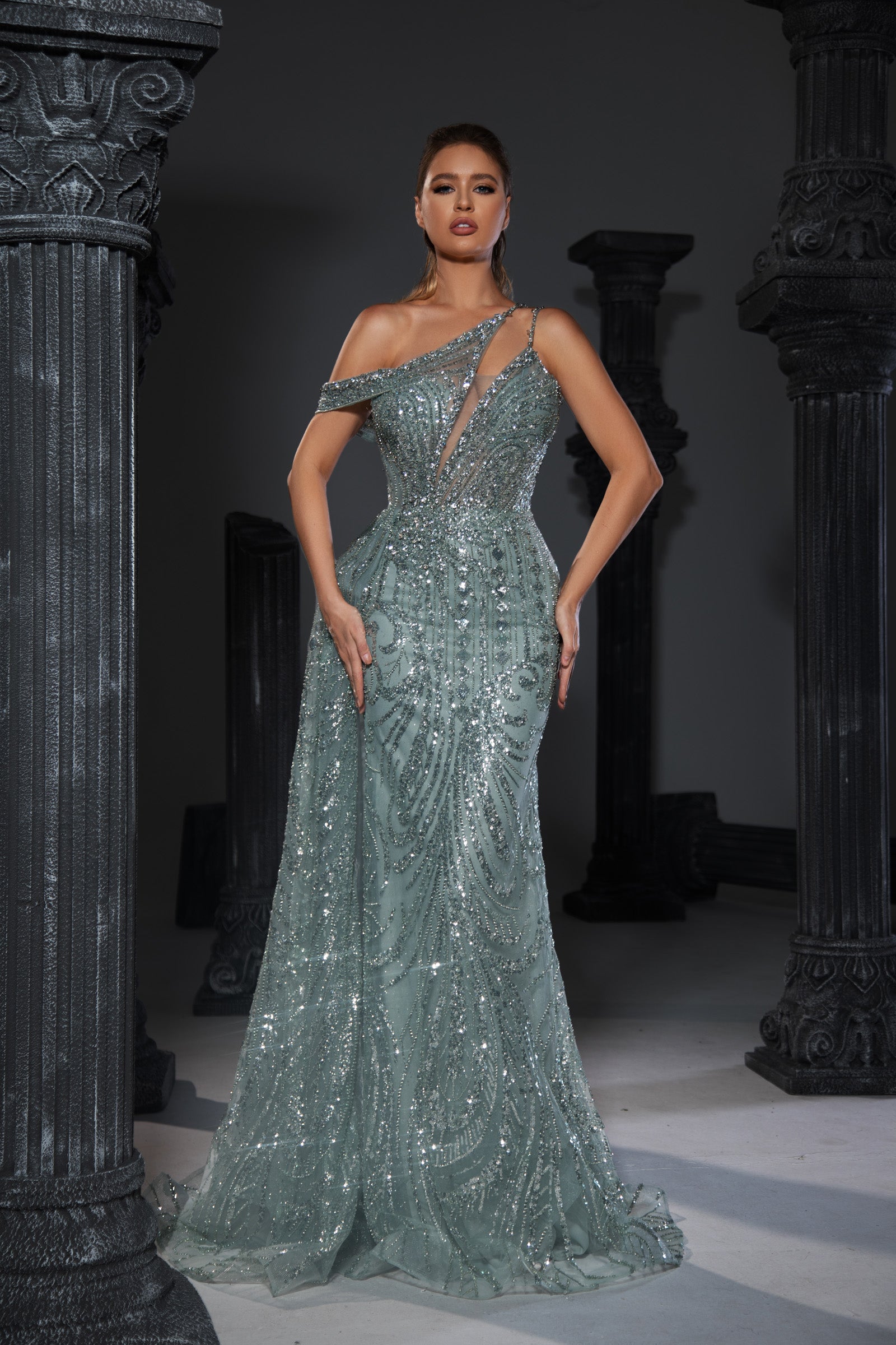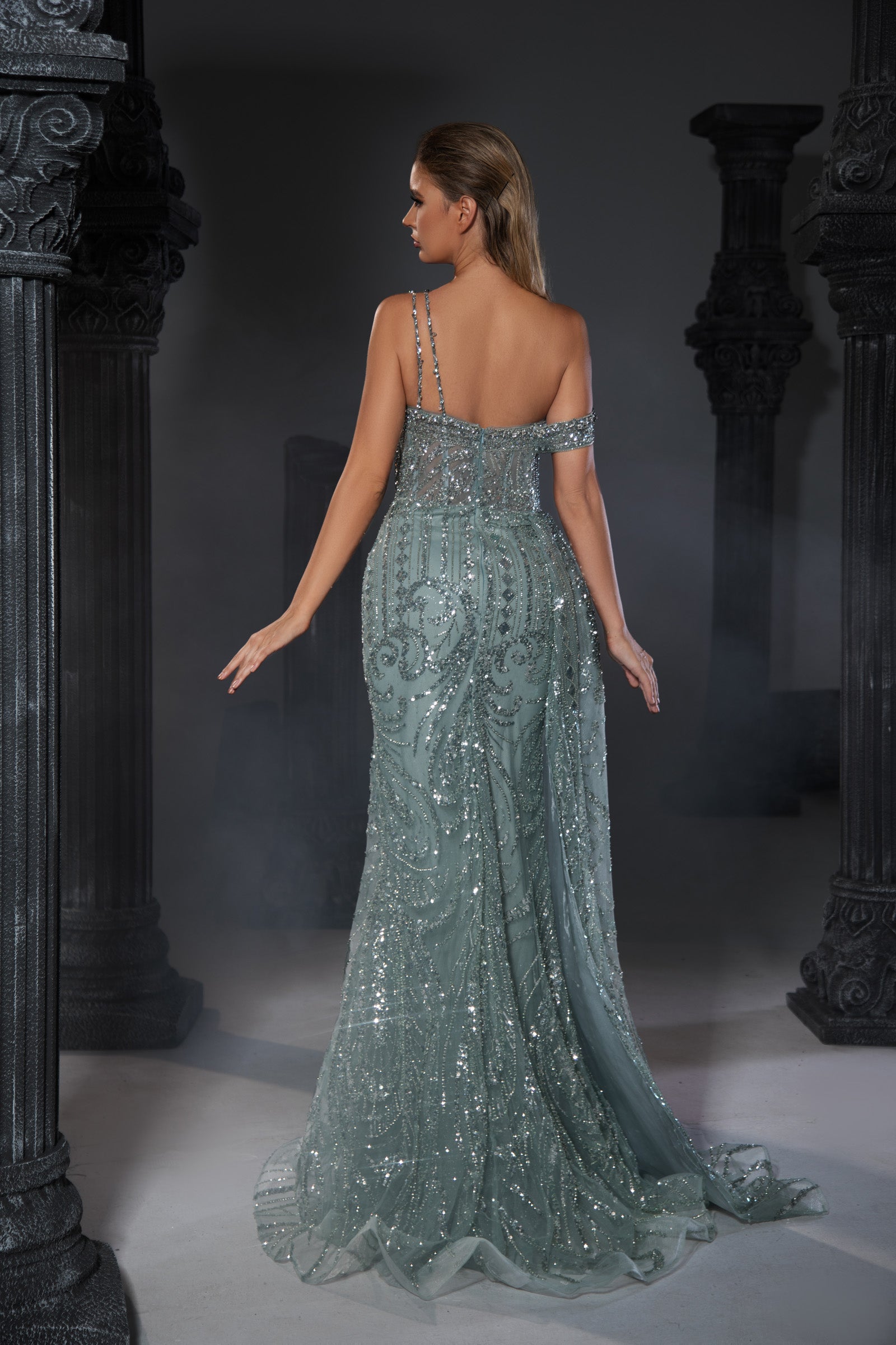 Evoking the spirit of a daring damsel, Queen Sophia exudes confidence and poise with every step. The dramatic silhouette and bold design elements make a bold statement, ensuring all eyes are on you as you grace the room with your presence. The sharp cutout through the front adds a touch of intrigue, revealing just enough skin to tantalize the senses and ignite curiosity.
