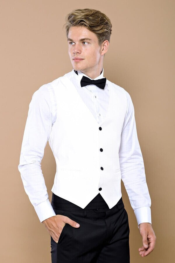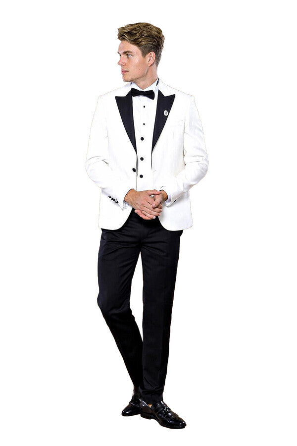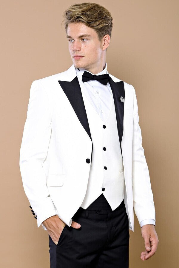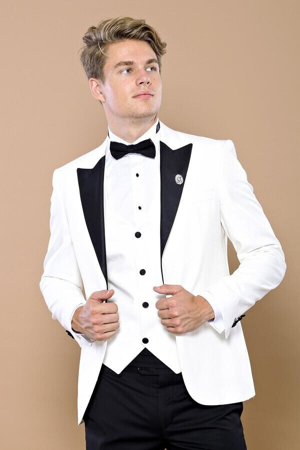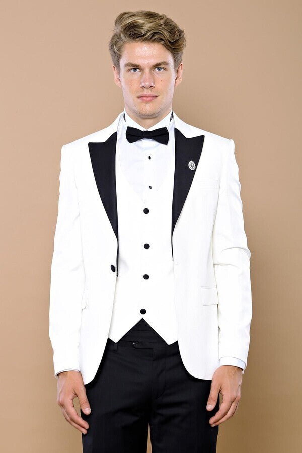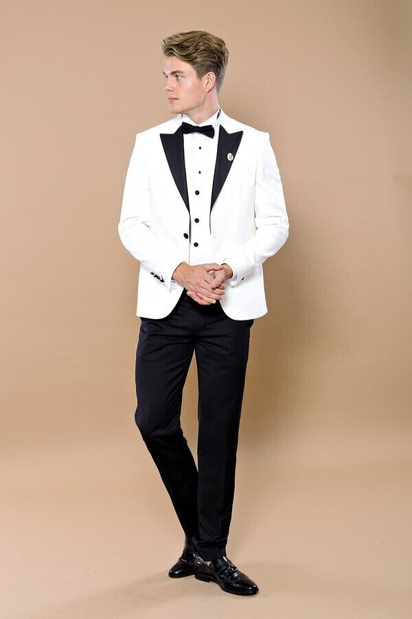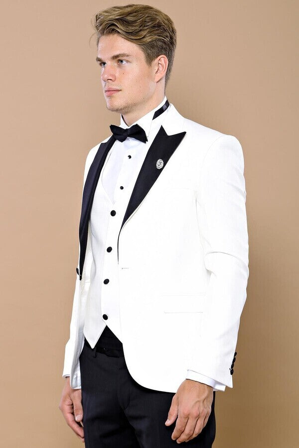 White 3-Piece Tuxedo | Contrast Detailing